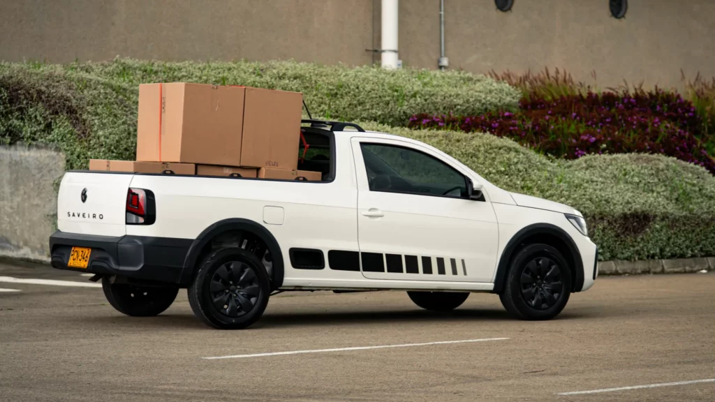 Volkswagen Saveiro cuenta con una capacidad de carga de hasta 667 Kg en un volumen de 924 L del platón. (Carga útil calculada de 420 Kg).